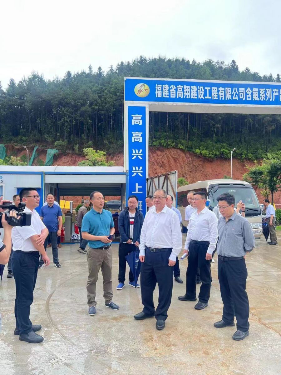 2022年6月1日上午,福建省政協(xié)副主席王光遠一行,在南平市有關領導及建陽區(qū)委書記魏敦盛等主要領導陪同下,蒞臨建陽經開區(qū)回瑤專業(yè)化工園我司新項目現場調研,王光遠副主席詳細詢問了我司新項目投資、進展情況及需要政府層面協(xié)調解決的問題,并鼓勵我司在確保安全前提下,加快項目推進,使項目早出效益,為當地氟產業(yè)發(fā)展作出積極貢獻。